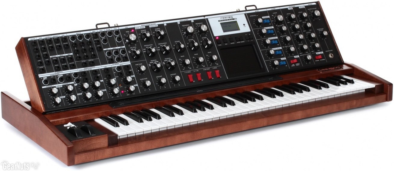 61 клавиша с механикой Fatar TP-8S чувствительная к скорости нажатия и послекасанию 3 VCO, двухканальный генератор шума, микшер, 2 независимых фильтра, 4 LFO и 3 огибающих